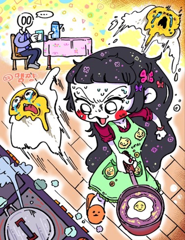 저는 인스타그램에서 맴쨩(@maem_chan)이라는 이름으로 활동하고 있고요, 앨범아트, 그리고 요즘은 일러스트와 인스타툰을 그리고 있어요.